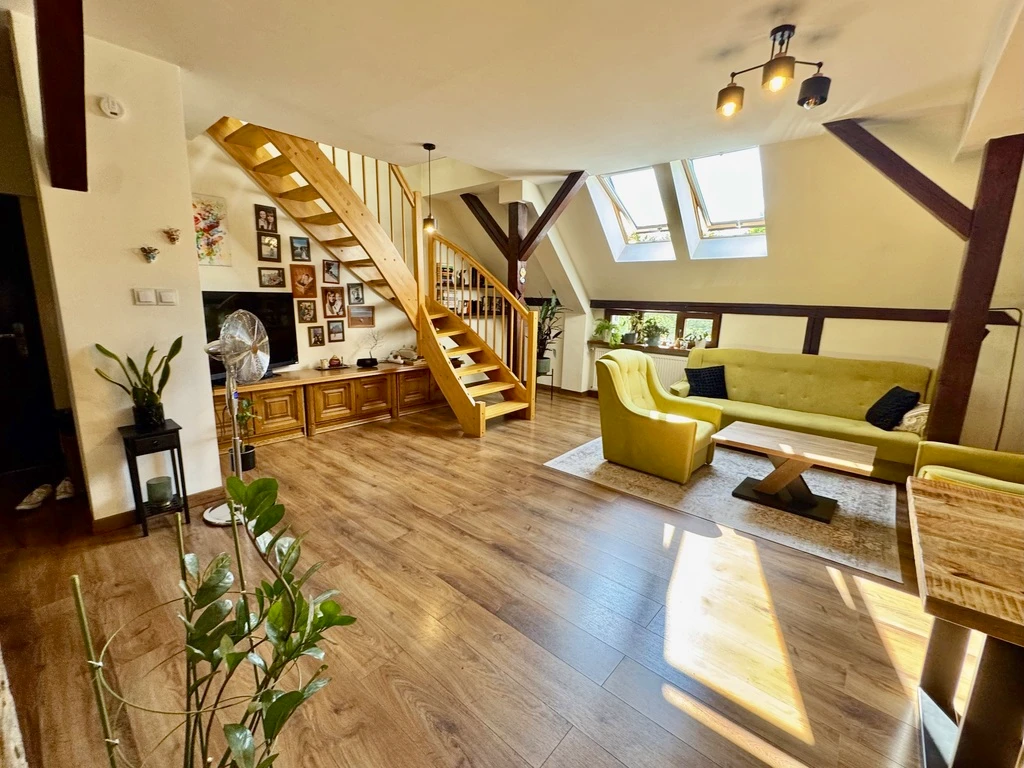 Willkommen in dieser charmanten, großzügigen Maisonettewohnung mit einer Gesamtfläche von 76,5 m², gelegen im 4. Obergeschoss eines gepflegten Mehrfamilienhauses aus dem Jahr 1950 im beliebten Stadtteil Pomorzany in Stettin.