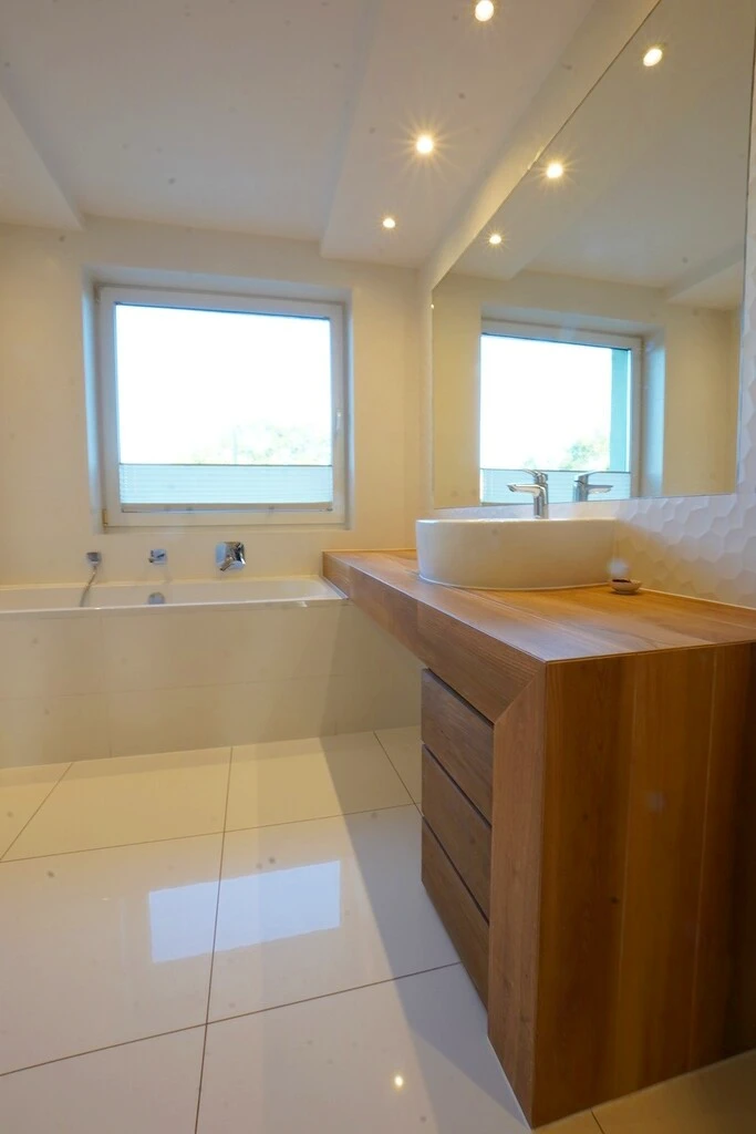 - Bodenbeläge: Barlinek-Dielen aus Esche im Erdgeschoss und Obergeschoss