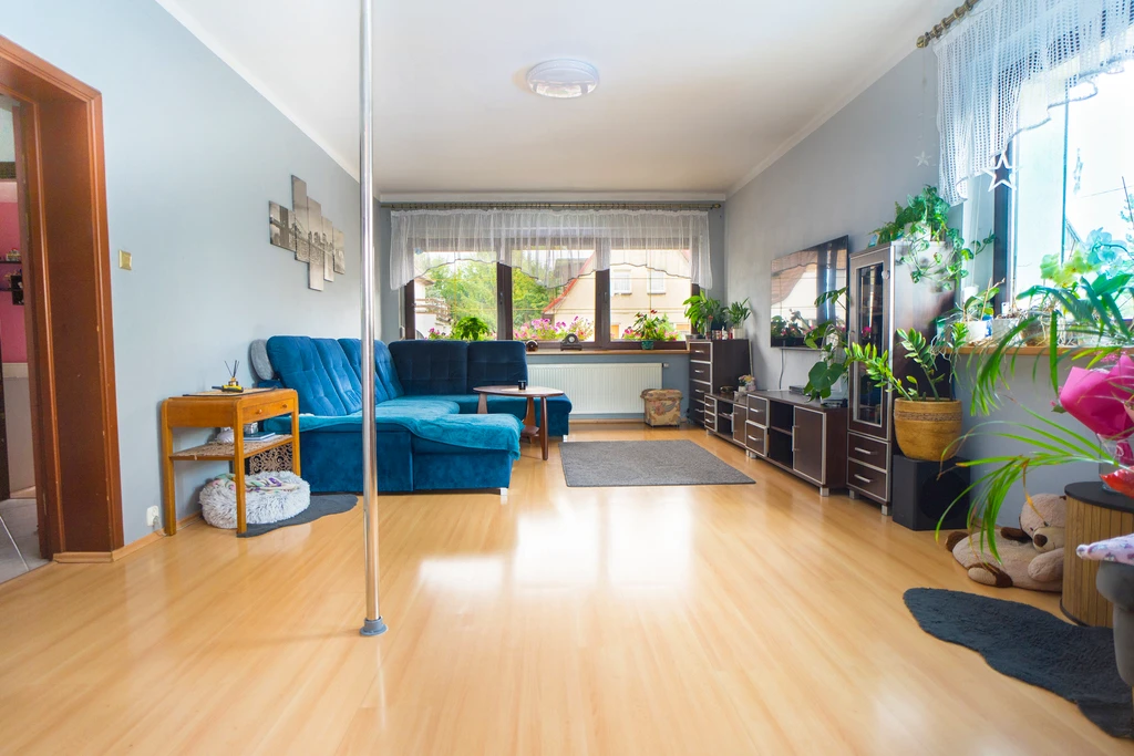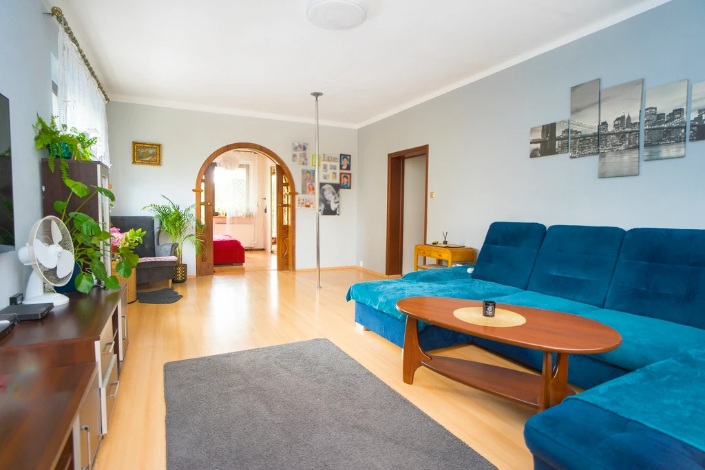 Willkommen in Ihrem neuen Zuhause! Diese großzügige und helle 3-Zimmer-Wohnung befindet sich im Erdgeschoss eines gepflegten Zweifamilienhauses aus dem Jahr 1976 in der ruhigen und grünen Wohngegend Dąbie.