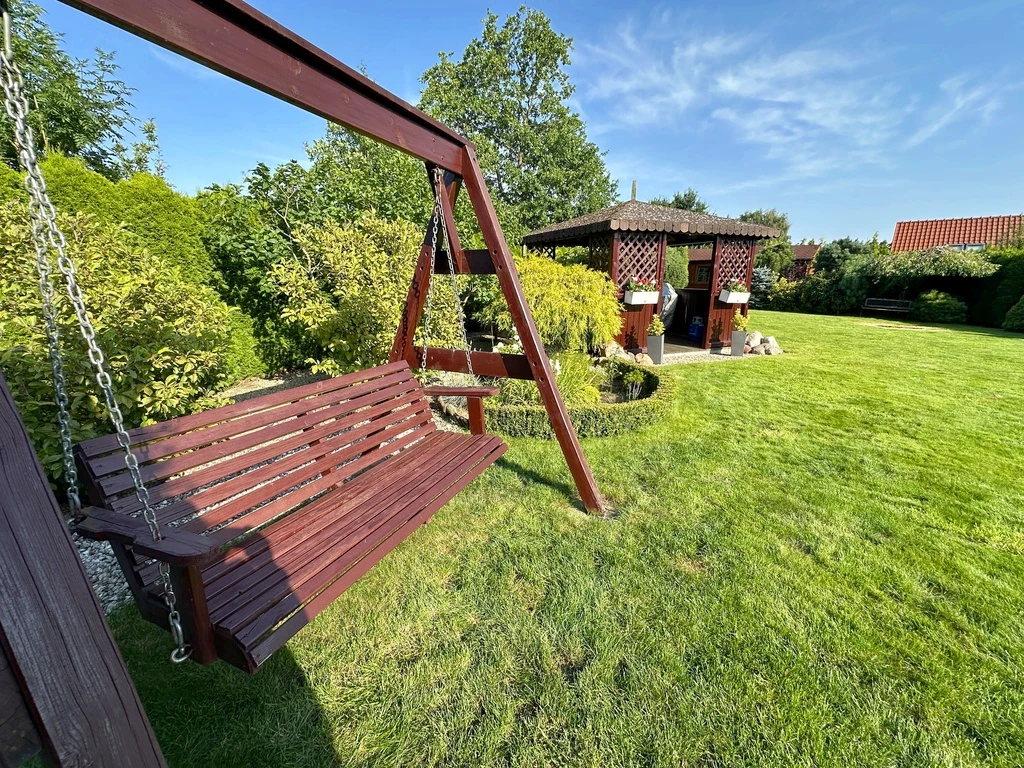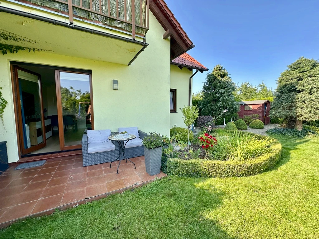 Zur Wohnung gehört ein traumhaft angelegter und sehr gepflegter Garten mit einer Fläche von 1 Anteil im Miteigentum am Grundstück – liebevoll gestaltet und ideal für alle, die Erholung, Freizeit und Gartenfreude schätzen.