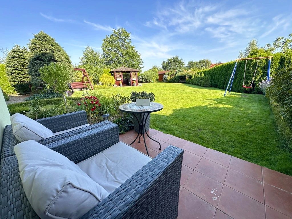Stettin-Osów: Gartenwohnung mit Terrasse, Grillbereich und beheizbarem Gartenhaus