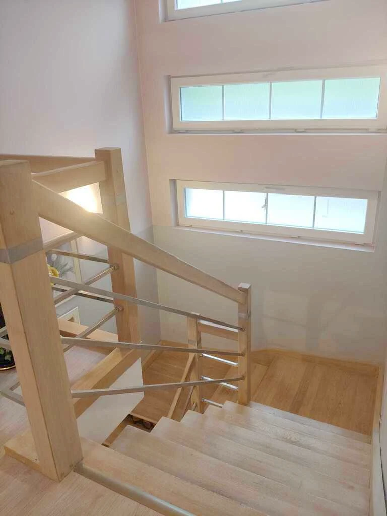 Über eine schöne Holztreppe erreicht man die obere Etage mit drei geräumigen Schlafzimmern sowie einem großen Badezimmer mit Badewanne und separatem WC. Ergänzt wird die Etage durch ein Ankleidezimmer und einen Waschraum – beides separat zugänglich.