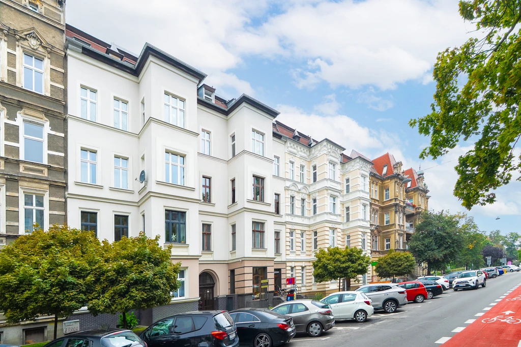 Die Wohnung befindet sich im ersten Obergeschoss eines liebevoll sanierten Gebäudes aus dem Jahr 1920. Die Fassade wurde gedämmt, die Wasser- und Abwasserleitungen erneuert und das repräsentative Treppenhaus inklusive Eingangstor restauriert – mit edlen historischen Details, die den Charme des Hauses unterstreichen. Trotz der zentralen Lage genießen Sie hier Ruhe, viel Grün und eine angenehme Nachbarschaft.