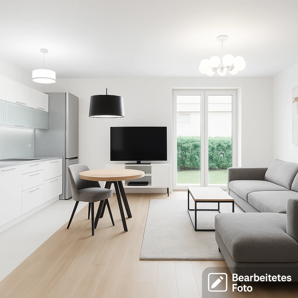 - Heller Wohnbereich mit offener Küche – ca. 20 m² mit Zugang zum privaten Garten (ca. 25 m²)