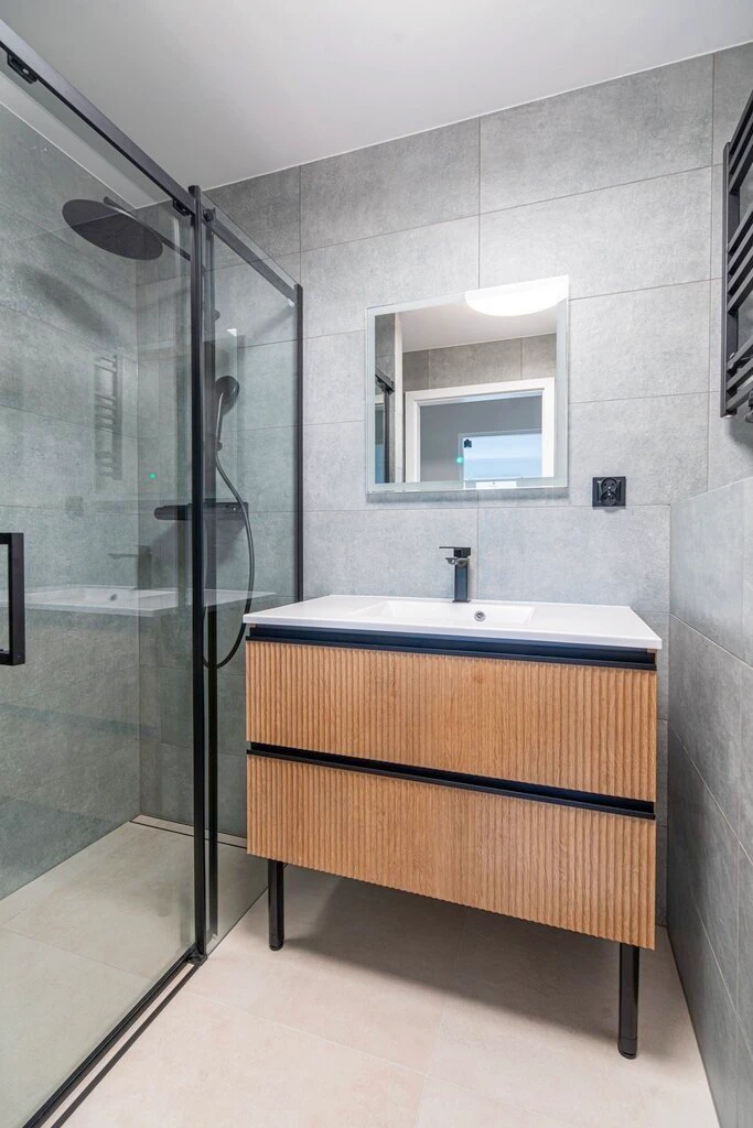 - Badezimmer mit Stil: Das stilvoll gestaltete Badezimmer bietet Qualität und Komfort für den täglichen Gebrauch.