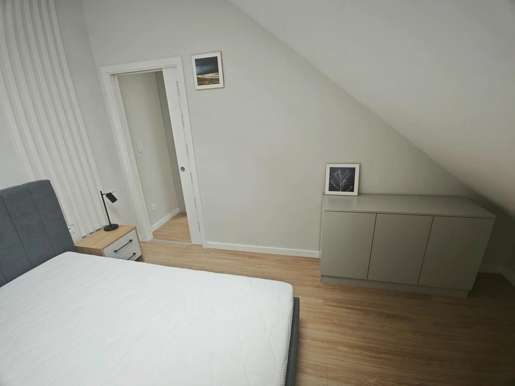 Zweites Geschoss: - Schlafbereich mit Dachschrägen – perfekt als erholsames Refugium über dem Meer - Viel Tageslicht durch geschickt platzierte Fenster - Stilvolle Details unterstreichen die maritime Architektur