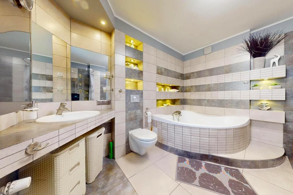- Pierwsze zdjęcie w naszej galerii zostało lekko zmodyfikowane, aby pokazać, jak nieruchomość mogłaby wyglądać – na przykład po zmianie koloru ścian. Kolejne zdjęcia przedstawiają rzeczywisty stan nieruchomości.