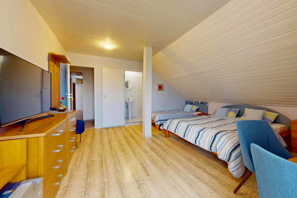 Der Pensionsteil umfasst zahlreiche Gästezimmer mit insgesamt 12 modernen Badezimmern. Die Räume befinden sich in einem idealen Zustand, bieten einen hohen Standard und sind vollständig ausgestattet – bereit für einen sofortigen Fortbetrieb.