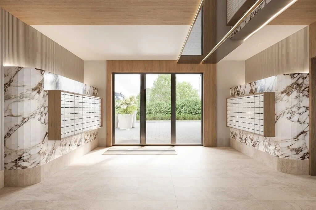 Die Innenräume der Gemeinschaftsbereiche werden in hellen, freundlichen Farben gestaltet, um die moderne Architektur und den besonderen Charakter des Projekts zu unterstreichen. Umweltfreundliche Technologien sorgen nicht nur für ein angenehmes Wohnklima, sondern auch für niedrige Betriebskosten und mehr Lebensqualität.