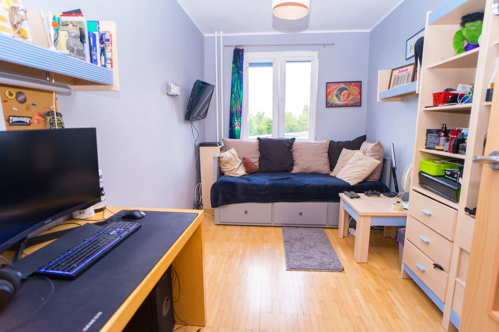 - Pierwsze zdjęcie w naszej galerii zostało lekko zmodyfikowane, aby pokazać, jak nieruchomość mogłaby wyglądać – na przykład po zmianie koloru ścian. Kolejne zdjęcia przedstawiają rzeczywisty stan nieruchomości.