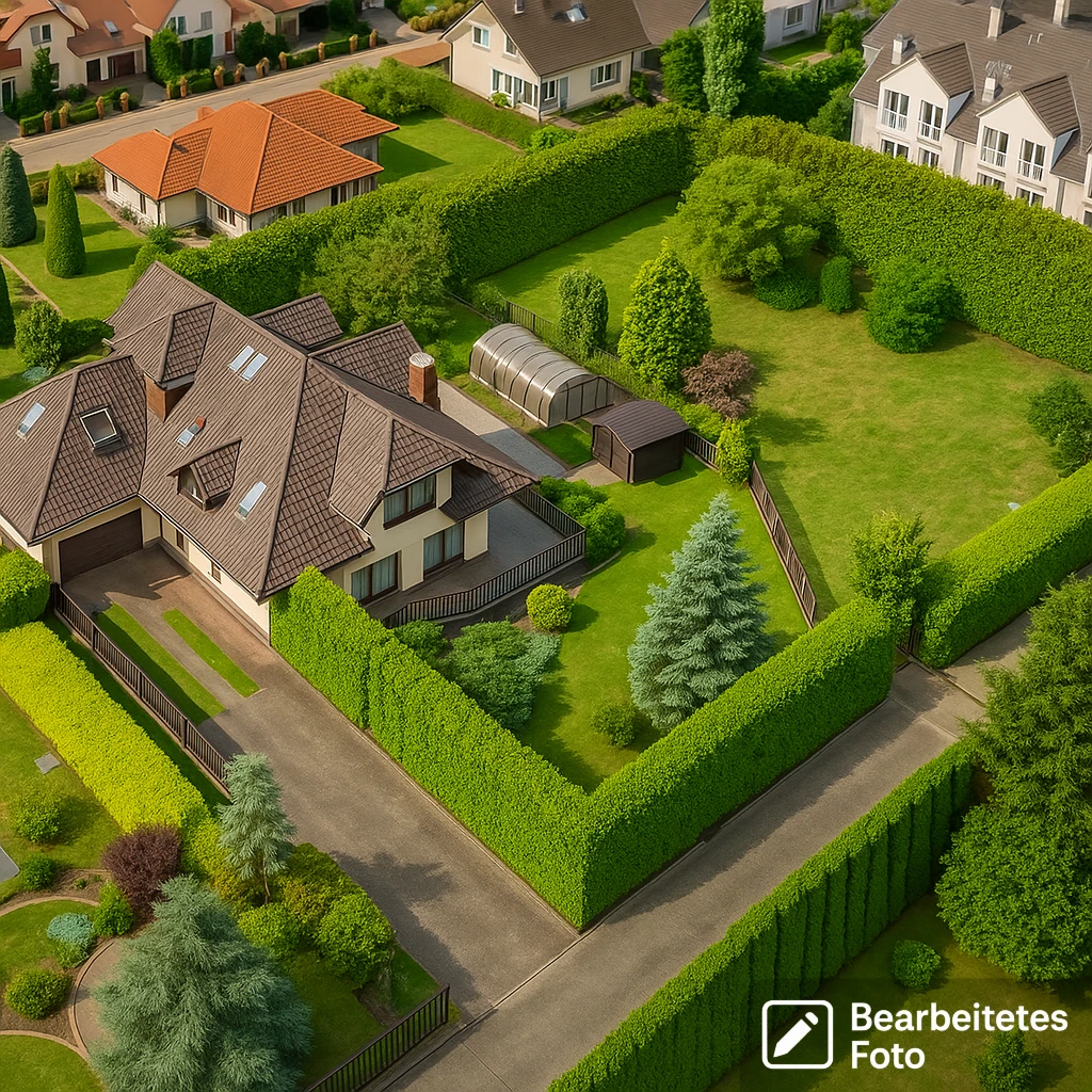 Das liebevoll angelegte Grundstück bietet: - Sonnenterrasse mit elektrischer Markise - Beheizter und überdachter Swimmingpool - Grillpavillon mit professioneller Ausstattung - Gepflegte Bepflanzung mit Ziersträuchern und alten Bäumen - Vollständig umzäuntes Grundstück mit Zutritt ausschließlich für Bewohner - Videoüberwachung, Alarmanlage und Gegensprechanlage inklusive