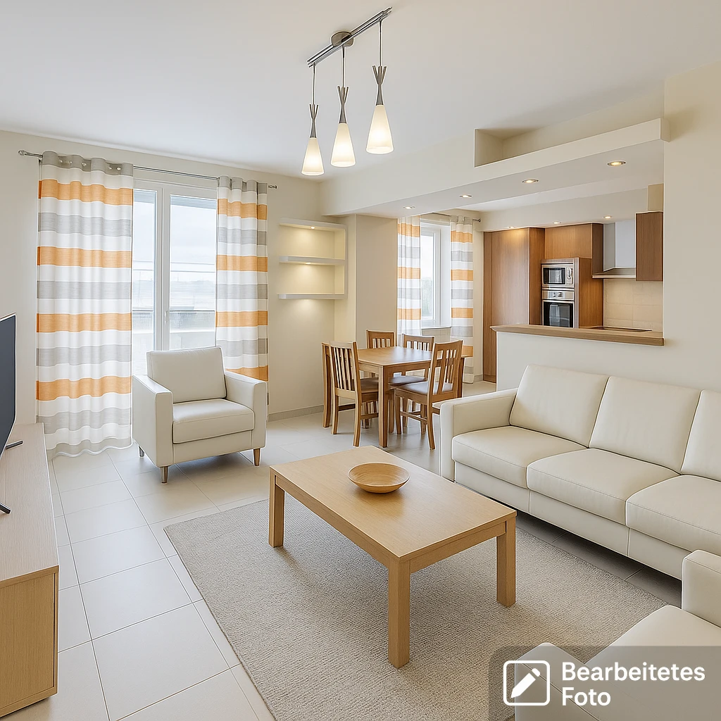 - Wände: Glatt verputzt, teils mit modernen Tapeten — alles gepflegt und bezugsbereit