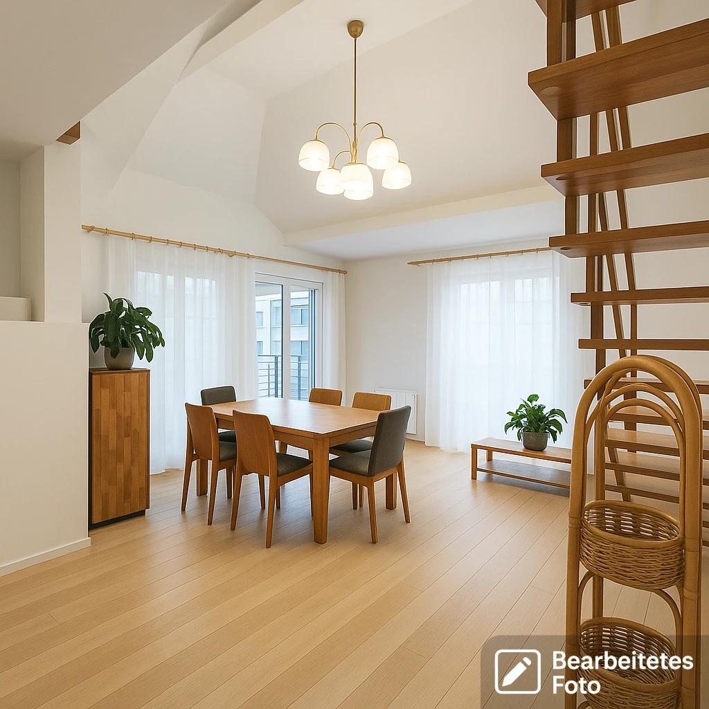 Wohnzimmer (23,65 m²) – geräumig und einladend, mit Zugang zur offenen Galerie/Mezzanine (13,53 m²). Hier lassen sich verschiedene Nutzungskonzepte wie ein Arbeitsbereich, Gästezimmer oder Rückzugsort verwirklichen.