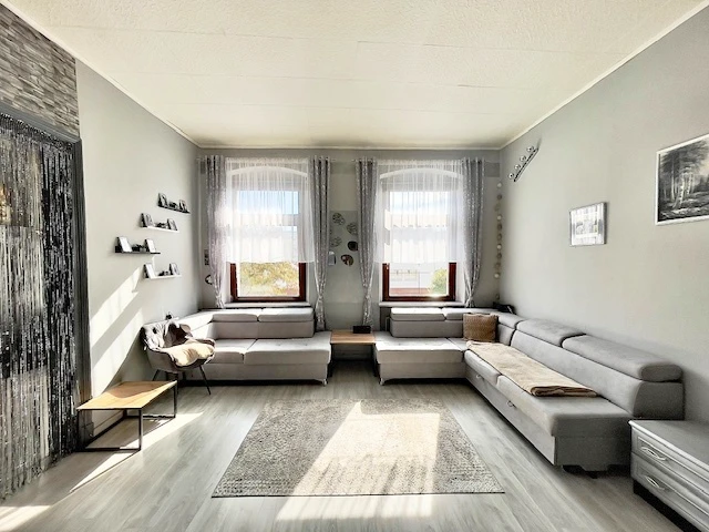 - Pierwsze zdjęcie w naszej galerii zostało lekko zmodyfikowane, aby pokazać, jak nieruchomość mogłaby wyglądać – na przykład po zmianie koloru ścian. Kolejne zdjęcia przedstawiają rzeczywisty stan nieruchomości.