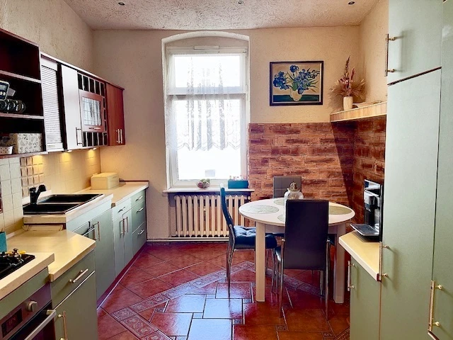 Die Wohnung befindet sich in der mittleren Etage des Gebäudes, was zusammen mit den dicken Ziegelwänden für eine hervorragende Dämmung sorgt. Das garantiert ein behagliches Wohngefühl und niedrige Heizkosten.