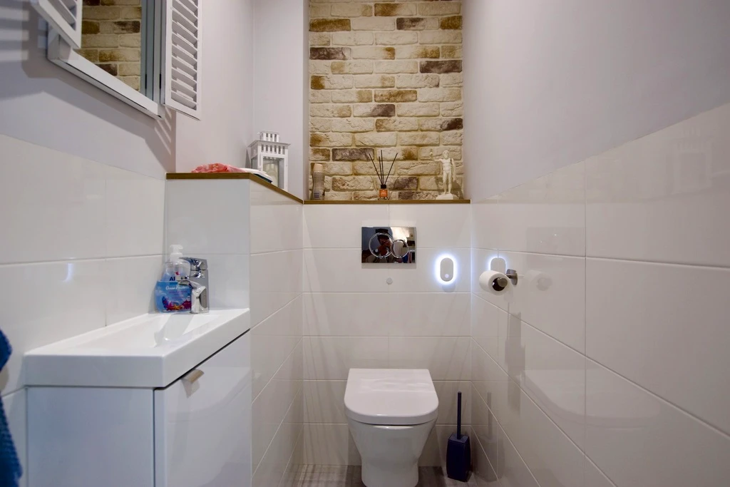 - Pierwsze zdjęcie w naszej galerii zostało lekko zmodyfikowane, aby pokazać, jak nieruchomość mogłaby wyglądać – na przykład po zmianie koloru ścian. Kolejne zdjęcia przedstawiają rzeczywisty stan nieruchomości.