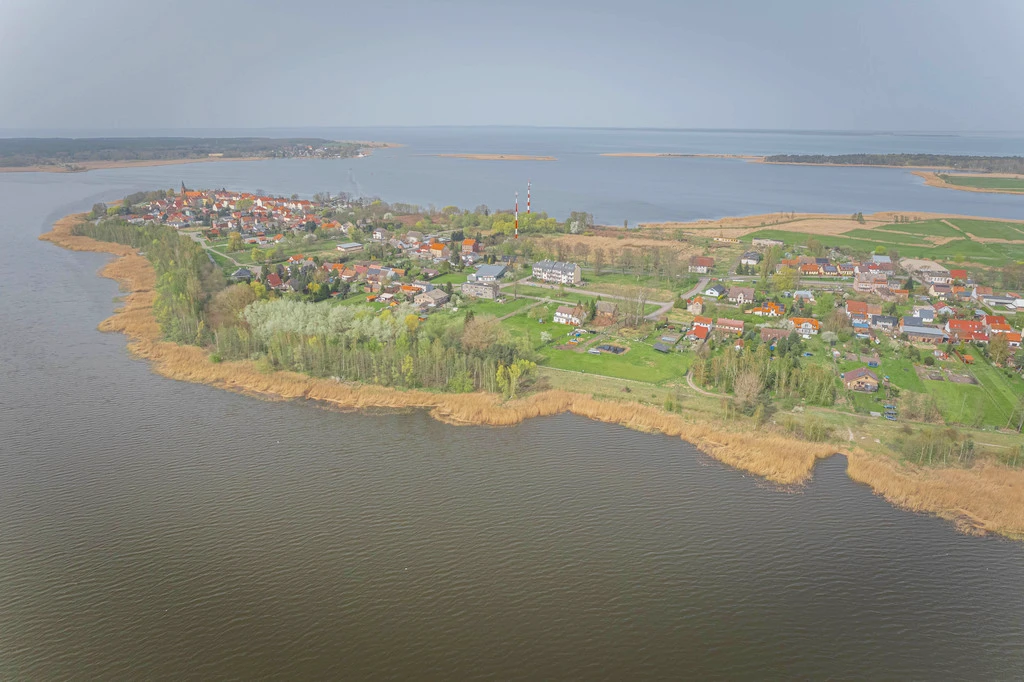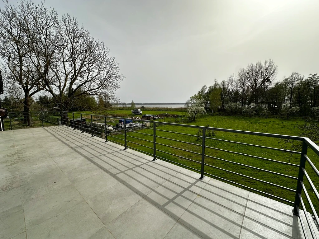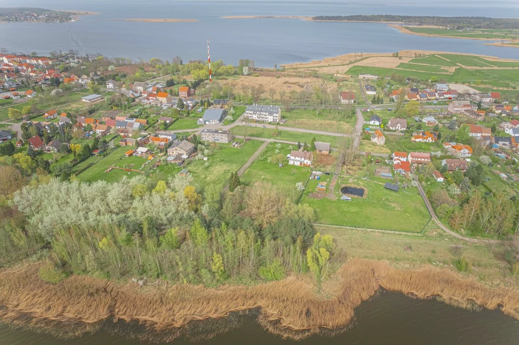 Das Anwesen liegt in einer ruhigen Wohnstraße in Nowe Warpno. In der Nähe finden sich Einkaufsmöglichkeiten, ein Tennisplatz, eine Marina und ein Badestrand am See – perfekte Voraussetzungen für Freizeit, Entspannung und Bewegung an der frischen Luft.
