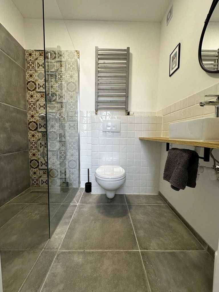 - 4 stilvolle Badezimmer, ausgestattet mit Dusche, Badewanne, WC und Waschtisch