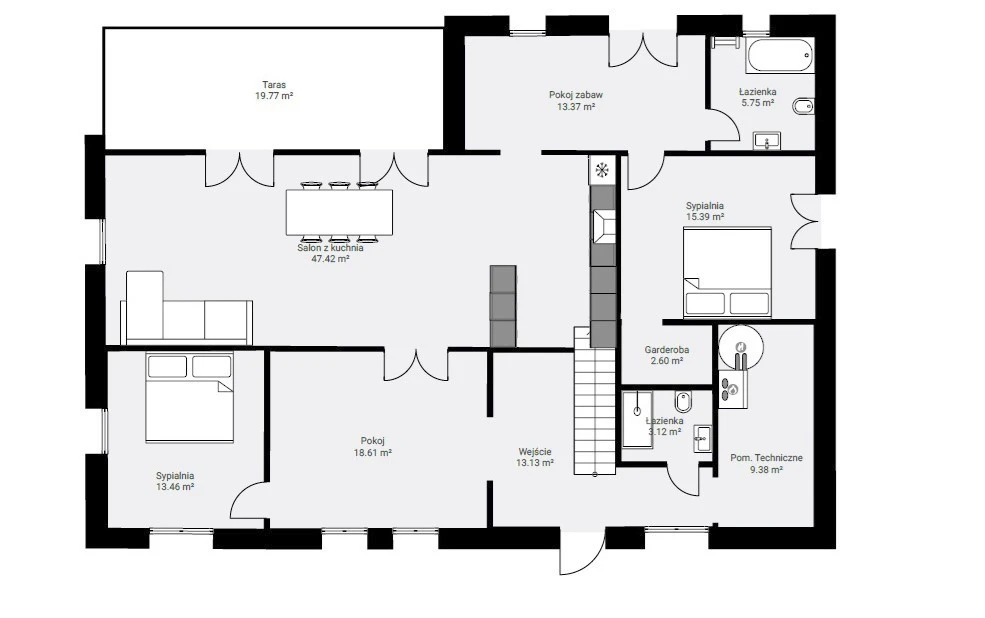 - 2 weitere Zimmer – 18,61 m² und 13,37 m²