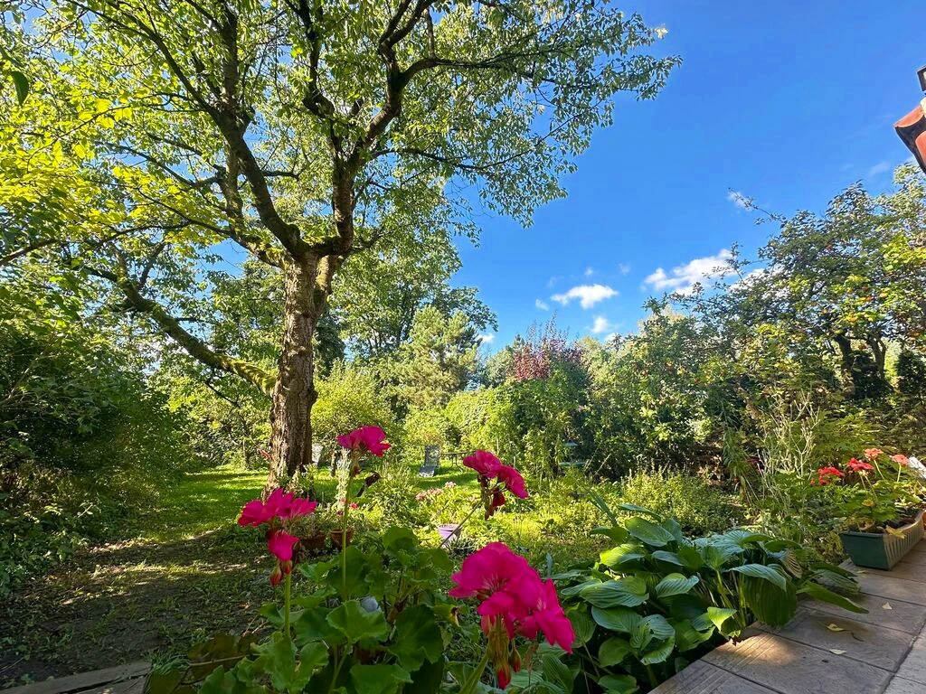 Der Garten mit einer Grundstücksfläche von 460 m² ist ein echtes Highlight: gepflegt, mit zahlreichen Pflanzen bestückt – perfekt zum Entspannen oder für gesellige Stunden im Freien.