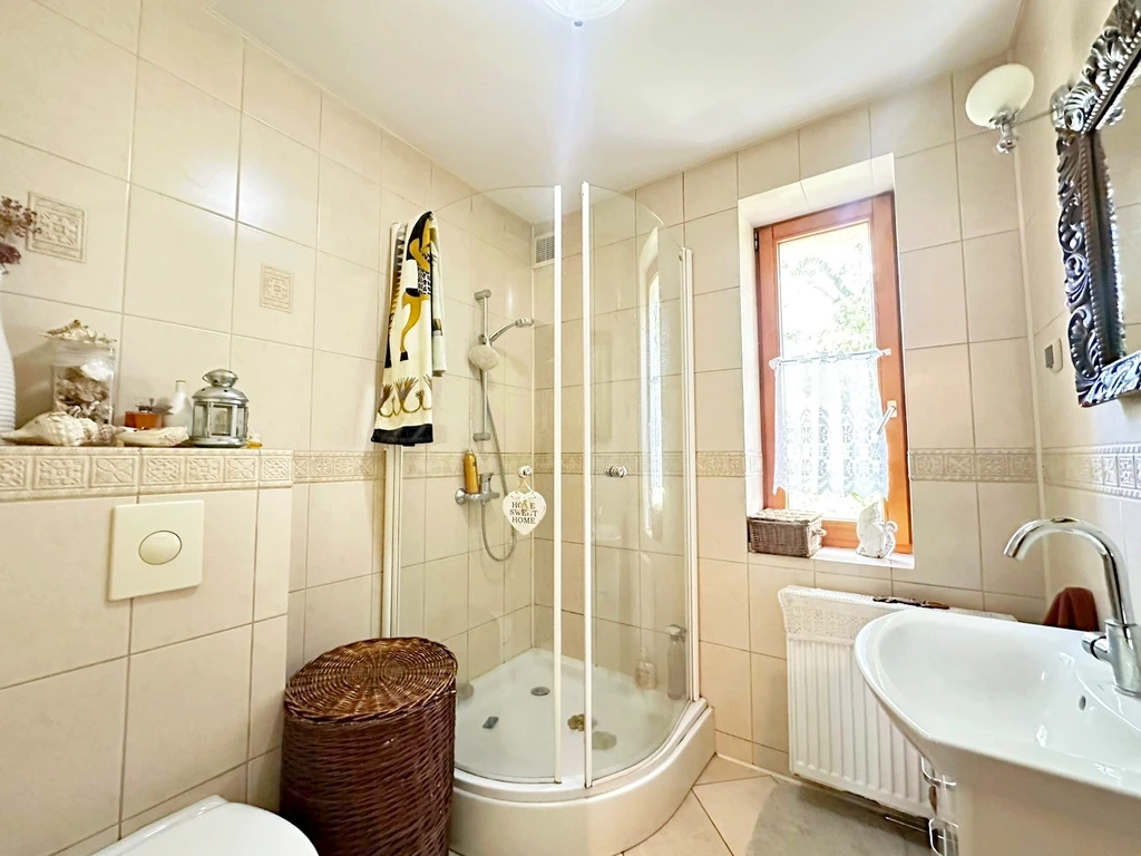 Diese attraktive Doppelhaushälfte befindet sich in bester Lage im beliebten Stadtteil Pogodno auf einem ebenen, rechteckigen Grundstück von 460 m². Das im Jahr 1930 aus Ziegel erbautes Haus bietet eine großzügige Wohnfläche von 200 m², die sich harmonisch über drei Etagen verteilt.