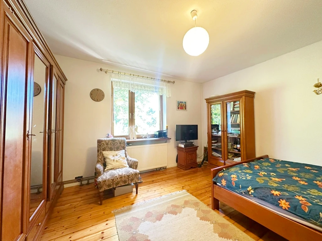 - Erdgeschoss: Vier geräumige und gut geschnittene Zimmer, eine separate Küche, ein Badezimmer sowie direkter Zugang zum liebevoll angelegten Garten.