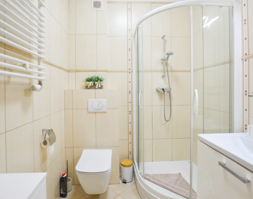 Das Bad ist zeitlos gefliest und mit hochwertigen Sanitäranlagen ausgestattet. Die Beheizung sowie Warmwasserversorgung erfolgen über das städtische Netz – komfortabel und effizient.