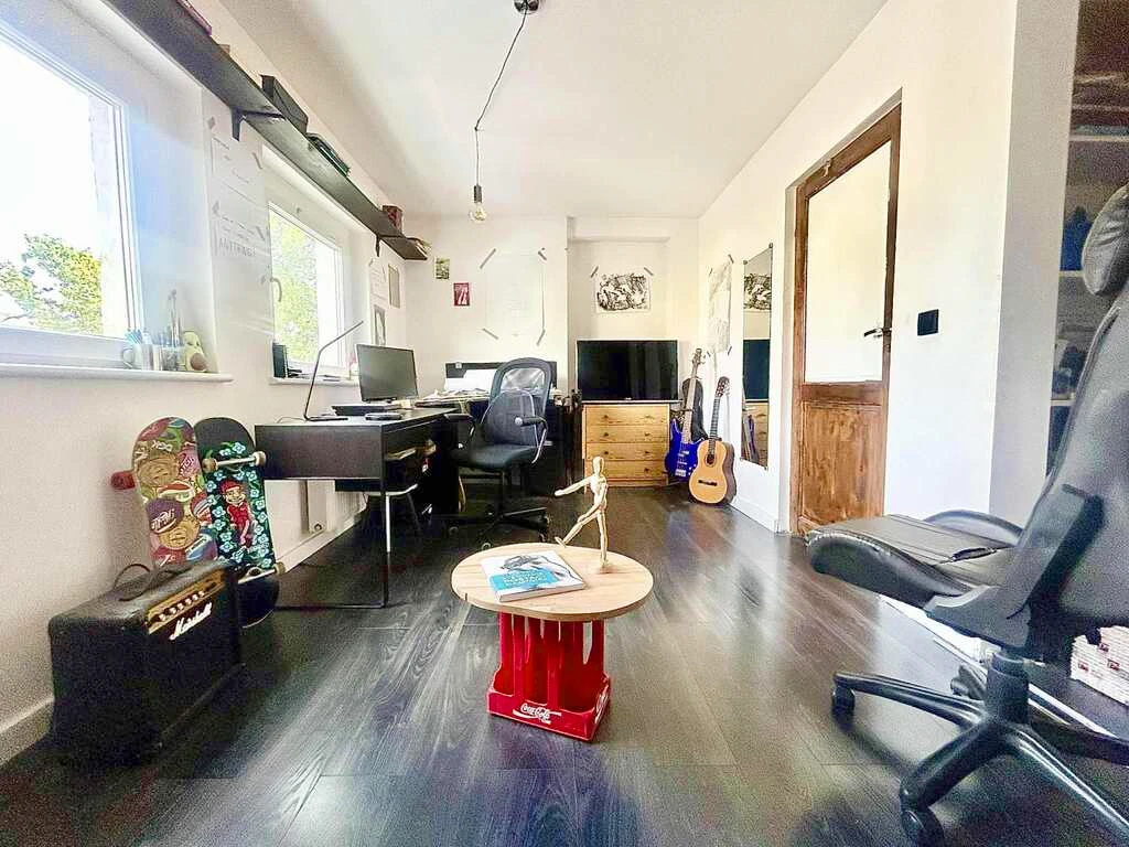 Separater Einliegerbereich von ca. 35 m² mit eigenem Eingang, Badezimmer sowie Zugang zur Terrasse. Perfekt als Büro, Praxis oder als unabhängige Wohneinheit verwendbar. Auch ein interner Durchgang vom Keller ist vorhanden.