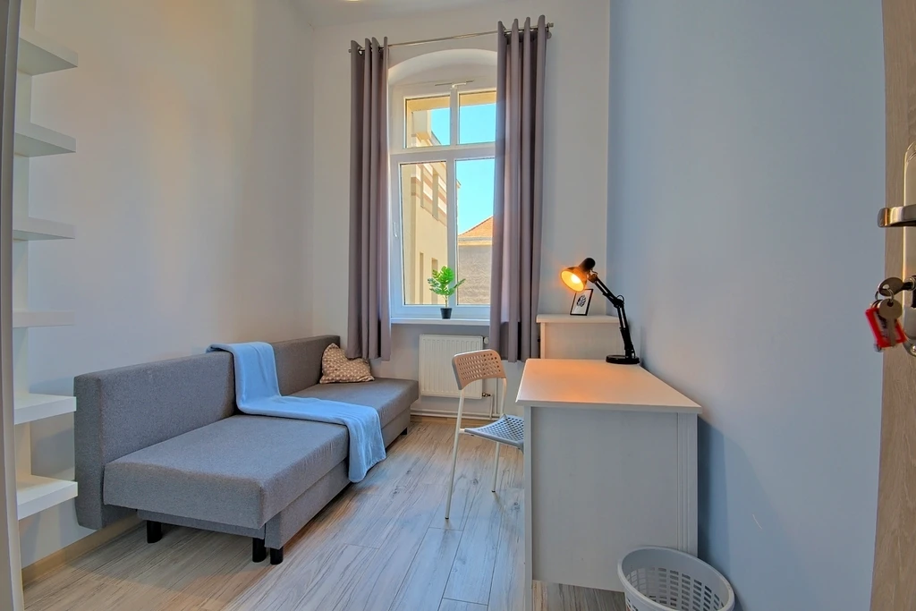 Besondere Vorzüge: - Komplett sanierte Fassade und Dach des Hauses - Funktional geschnittene Räume mit zwei separaten Bädern - Hohe Mietrendite – aktuelle Rückflüsse von ca. €1.882 (PLN 8.000) monatlich - Ideal geeignet als Studenten-WG, Business-Wohnung oder Mehrgenerationenhaushalt - Gute Infrastruktur direkt vor der Tür