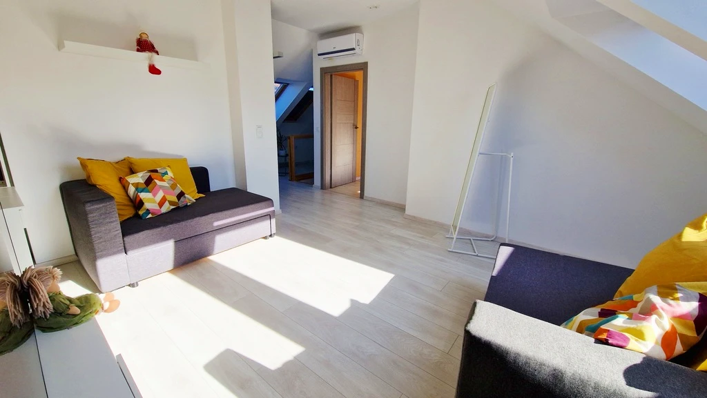 Willkommen in Ihrem neuen Zuhause! Dieses großzügige und moderne Maisonette-Apartment befindet sich im gepflegten Wohnkomplex „Osiedle Sympatyczne“ in Warzymice – direkt an der Stadtgrenze zu Stettin. Die Wohnung besticht durch ihre durchdachte Raumaufteilung, stilvolle Ausstattung und eine ideale Lage für Familien oder alle, die Raum und Komfort schätzen.