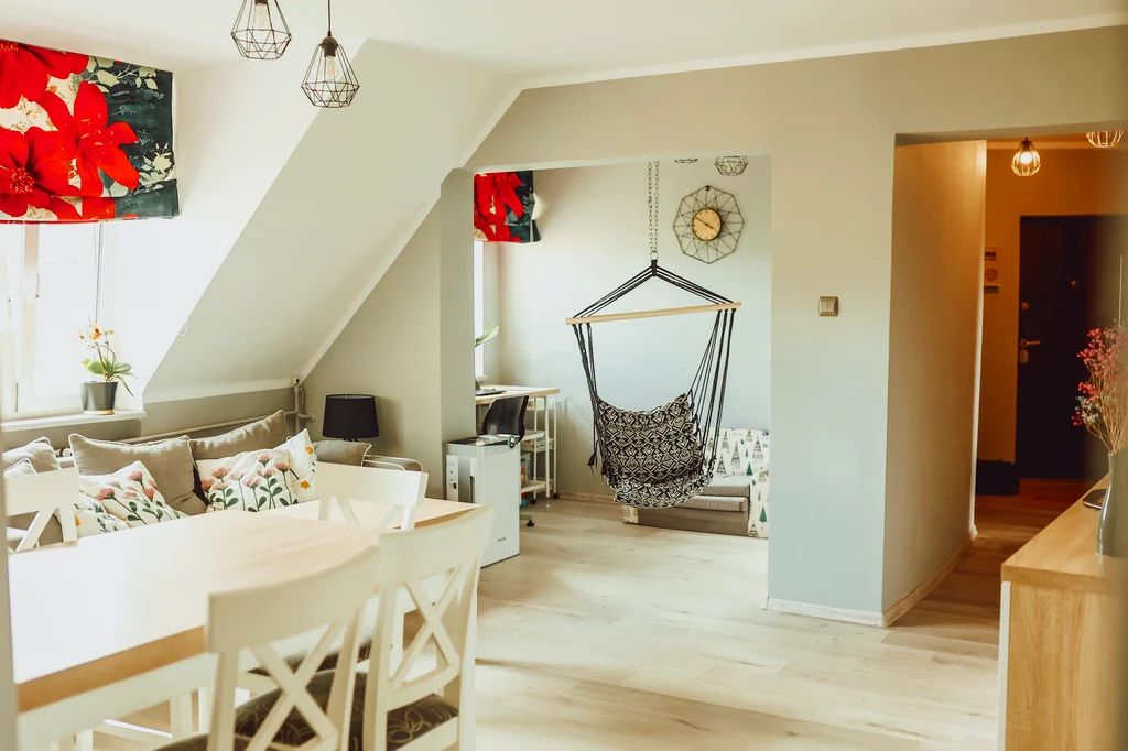 - Pierwsze zdjęcie w naszej galerii zostało lekko zmodyfikowane, aby pokazać, jak nieruchomość mogłaby wyglądać – na przykład po zmianie koloru ścian. Kolejne zdjęcia przedstawiają rzeczywisty stan nieruchomości.
