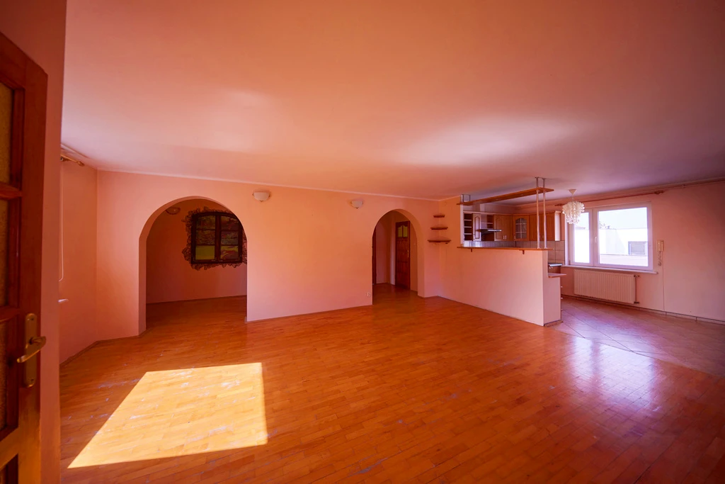 - Pierwsze zdjęcie w naszej galerii zostało lekko zmodyfikowane, aby pokazać, jak nieruchomość mogłaby wyglądać – na przykład po zmianie koloru ścian. Kolejne zdjęcia przedstawiają rzeczywisty stan nieruchomości.