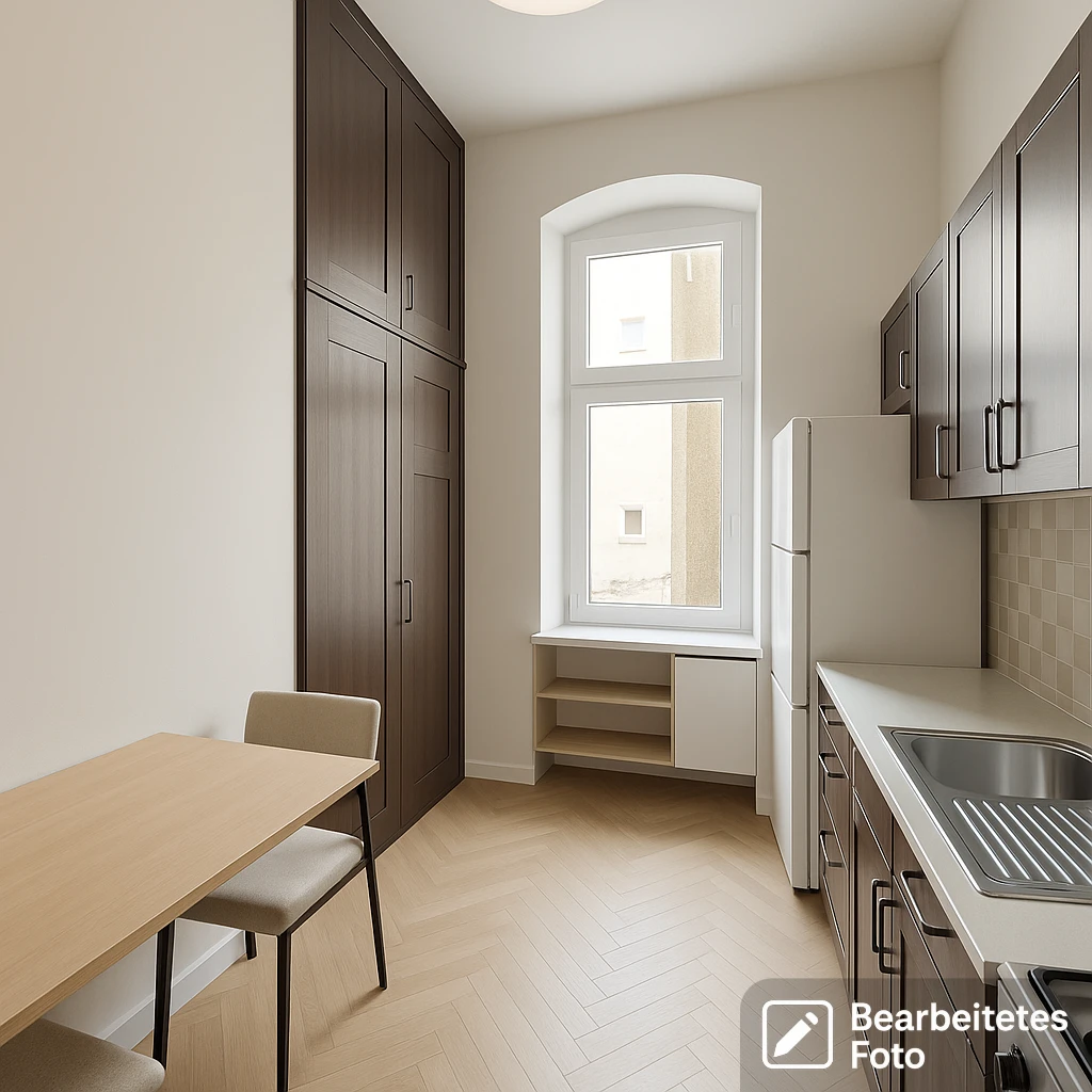 (Flächen: 23,77 m², 22,35 m², 18,37 m², 17,57 m², 17,23 m²) - Helle, separate Küche mit Fenster – ca. 8,32 m²