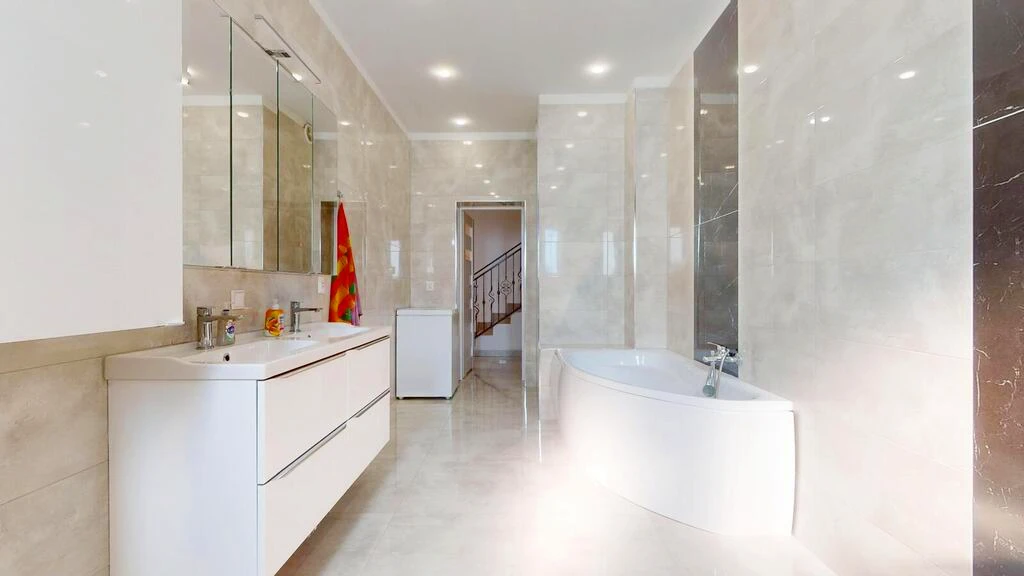 Das Innendesign des Hauses ist in hellen, freundlichen Farben gehalten – überwiegend Weiß- und Grautöne schaffen eine moderne, zeitlose Atmosphäre. Die hochwertige Gesamtausstattung und die großzügige Raumaufteilung machen dieses Haus zu einer hervorragenden Wahl für Familien oder alle, die viel Platz zum Leben und Arbeiten wünschen.