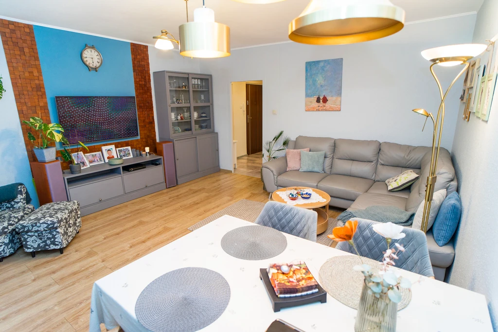 - Pierwsze zdjęcie w naszej galerii zostało lekko zmodyfikowane, aby pokazać, jak nieruchomość mogłaby wyglądać – na przykład po zmianie koloru ścian. Kolejne zdjęcia przedstawiają rzeczywisty stan nieruchomości.