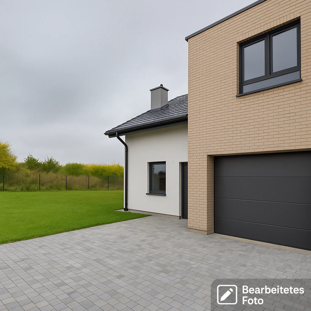 - Zufahrtsstraße mit hochwertigem Pflaster angelegt