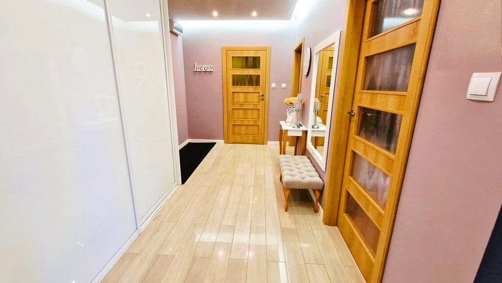 Die Wohnung befindet sich in einem modernen, gepflegten Apartmenthaus in Warszewo – einem ruhigen, gut angebundenen Stadtteil von Stettin. Die Immobilie besticht durch ihre durchdachte Aufteilung, hochwertige Ausstattung und helle, großzügige Räume.