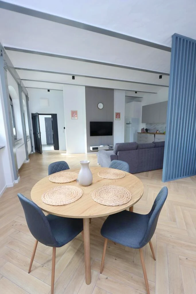 Willkommen in Ihrem neuen Zuhause: Dieses elegant renovierte Loft-Apartment mit einer Wohnfläche von 63,5 m² befindet sich im 1. Obergeschoss eines frisch sanierten Altbaus in einem ruhigen, charmanten Gebäude mit nur vier Wohneinheiten – zentral gelegen im Stadtteil Śródmieście von Szczecin, in einer ruhigen Seitenstraße der ul. Parkowa.