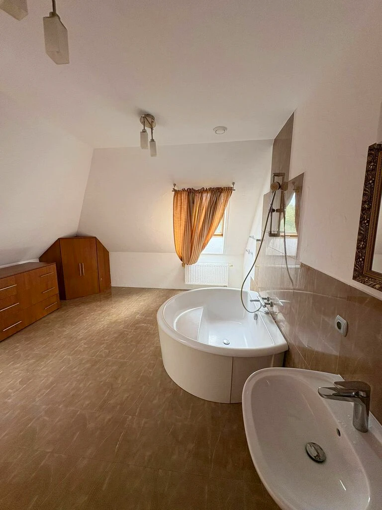 Zwei geschmackvoll eingerichtete Badezimmer bieten höchsten Komfort: eines mit Badewanne, das andere mit moderner Duschkabine – praktisch sowohl für Familien als auch für Gäste.