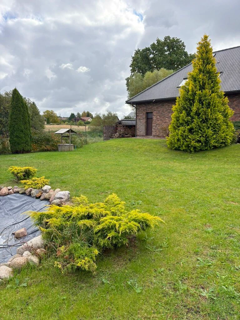 Das große Grundstück ist vollständig eingefriedet und begeistert mit einem wunderschön angelegten Garten. Ein gepflegter Rasen, Ziersträucher, Blumenbeete und Bäume sorgen für eine harmonische Atmosphäre. Eine Terrasse oder Sitzgelegenheit im Freien bietet Raum für Erholung, Grillabende oder das Spiel der Kinder im Freien.