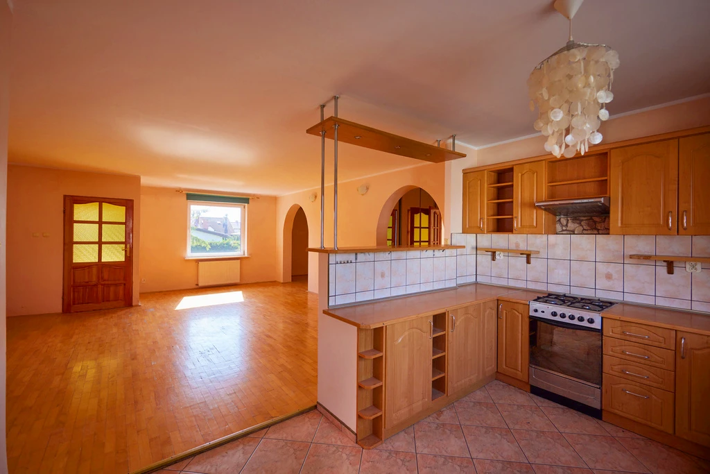 Zum Verkauf steht ein freistehendes Einfamilienhaus im beliebten Stadtteil Gumieńce. Die Immobilie befindet sich auf einem ebenen, rechteckigen Grundstück von 493 m² und bietet mit einer Gesamtfläche von 178,34 m² und einer Nutzfläche von 280,50 m² viel Platz für eine Familie. Das Haus wurde 1974 erbaut und befindet sich in einem guten baulichen Zustand, ist jedoch renovierungsbedürftig – ideal für Käufer mit kreativen Ideen!