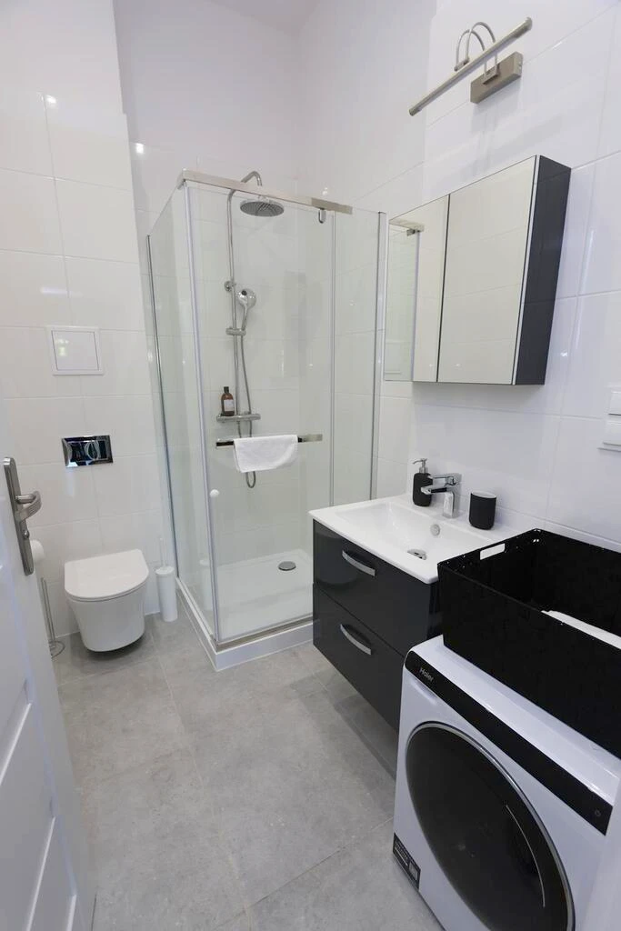 Diese moderne und hochwertig ausgestattete Wohnung befindet sich in einem kleinen, neu erbauten Apartmenthaus in gefragter Lage von Śródmieście. Die großzügige Raumhöhe von über 3 Metern schafft ein offenes und luftiges Wohngefühl. Die zentrale Lage bietet sowohl urbanes Leben als auch Ruhezonen in der direkten Umgebung – ideal als Lebensmittelpunkt oder attraktive Investition.