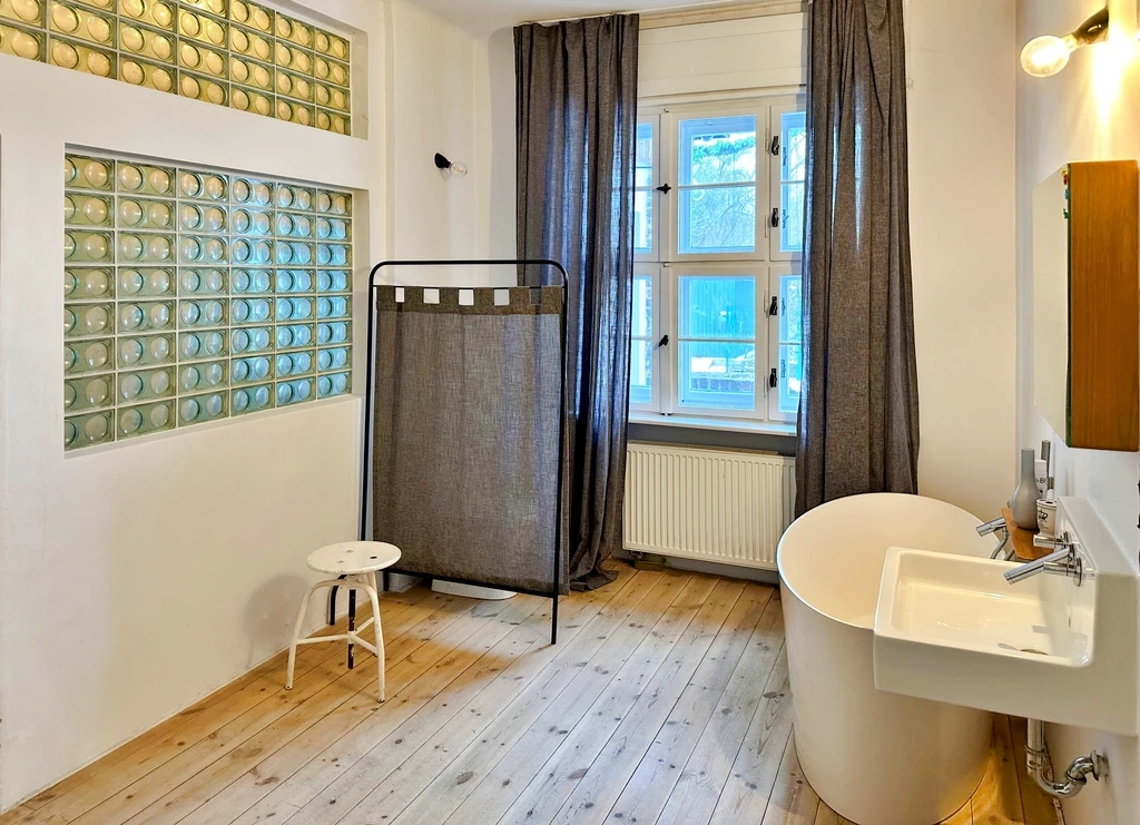 Renommierte Designer vom Studio Loft Kolasiński waren für Architektur und Ausführung verantwortlich. Maßgefertigte Küchenschränke und Einbauten stammen von einem erfahrenen Tischler. Fensterrahmen aus Holz wurden originalgetreu restauriert und mit modernen Doppelglasscheiben ausgestattet—für hervorragenden Wärme- und Schallschutz.