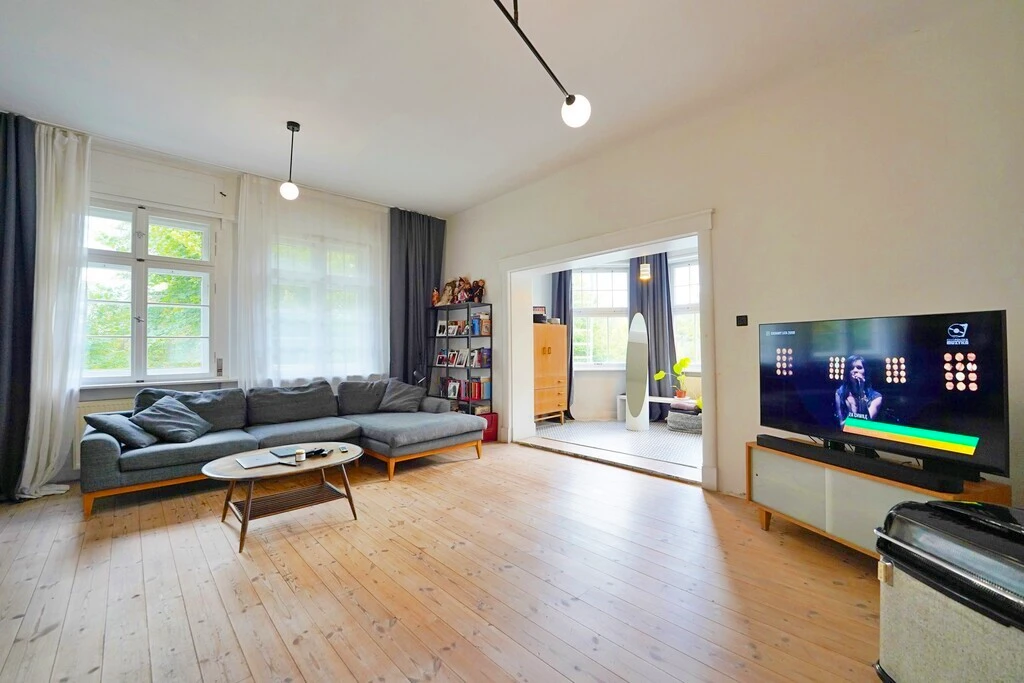 Die Deckenhöhe von ca. 3,3 m und große Fenster schaffen ein besonders großzügiges Raumgefühl. Insgesamt bietet die Wohnung folgende Aufteilung: