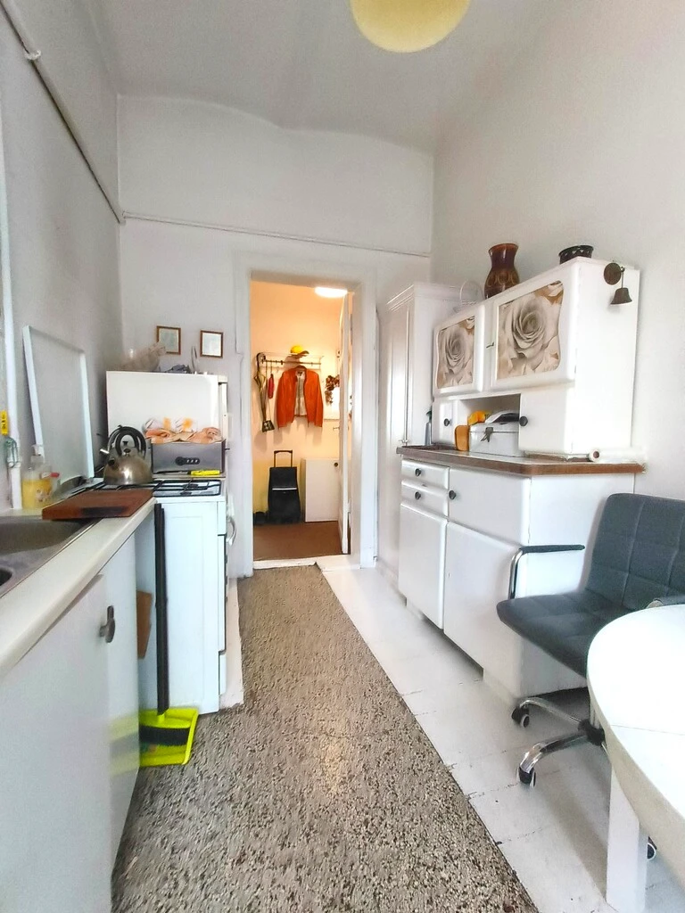 Die Wohnung befindet sich in einem Zustand zur Adaptierung, was Ihnen erlaubt, die Räume nach Ihren Vorstellungen zu gestalten. Die Wände wurden in traditioneller Ziegelbauweise errichtet. Die Küche ist separat und verfügt über ein Fenster, was für eine gute Belichtung sorgt. Es gibt ein Badezimmer.