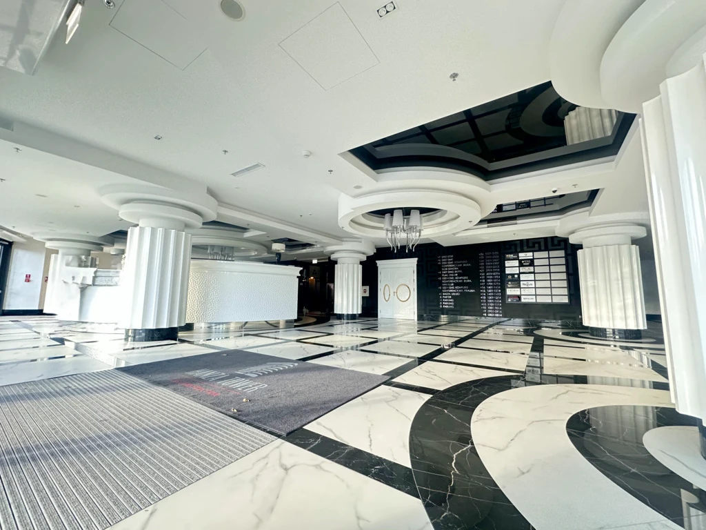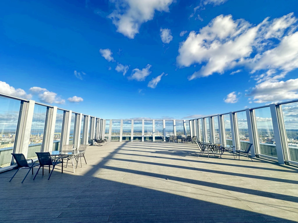Der Hanza Tower überzeugt durch luxuriöse Gemeinschaftsbereiche und bietet den Bewohnern Zugang zu einem großzügigen Schwimmbad – ideal zum Entspannen nach einem langen Tag.