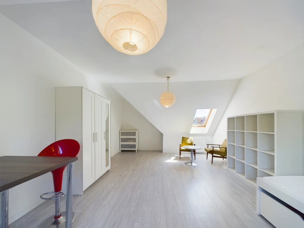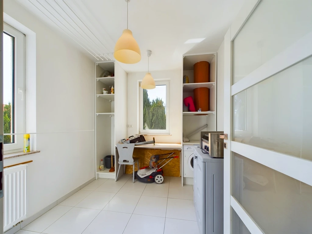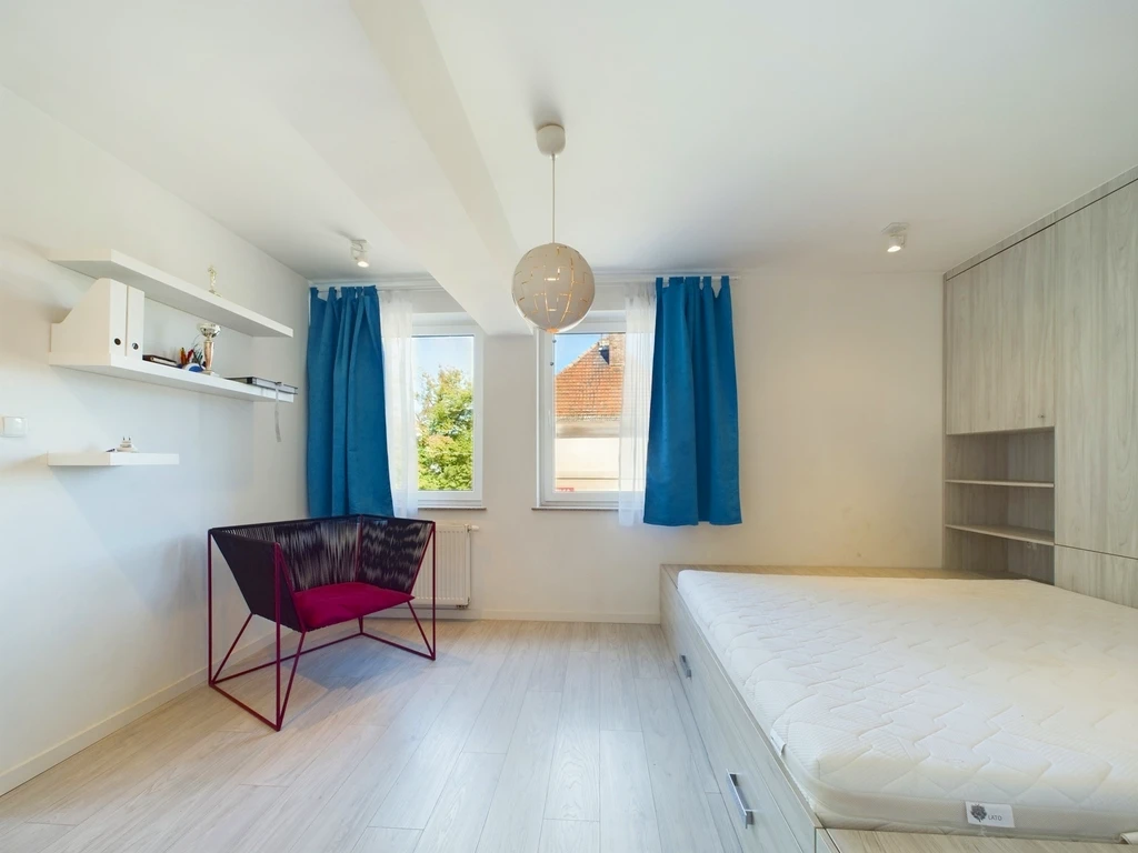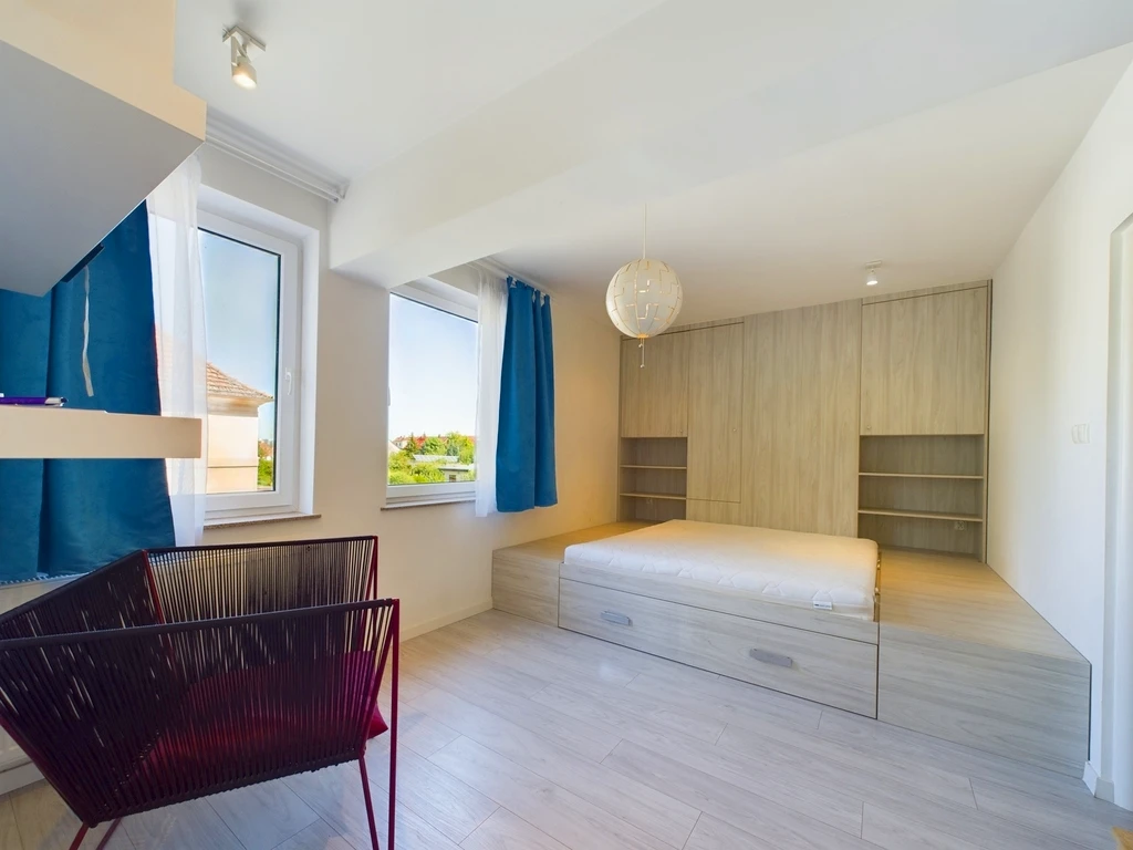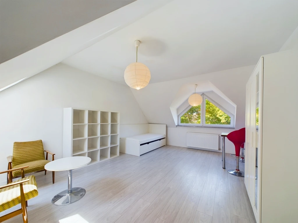 Die Immobilie liegt in einer ruhigen Nebenstraße im Stadtteil Pogodno, einem der begehrtesten Viertel Szczecins. Die Umgebung ist von gepflegten Wohnhäusern und viel Grün durchzogen. Trotz der ruhigen Lage bietet die Nachbarschaft eine hervorragende Infrastruktur.