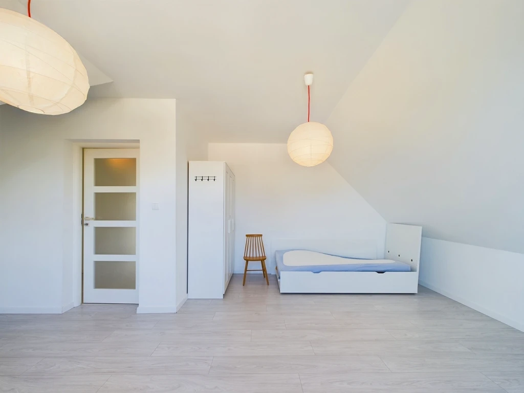 - Pierwsze zdjęcie w naszej galerii zostało lekko zmodyfikowane, aby pokazać, jak nieruchomość mogłaby wyglądać – na przykład po zmianie koloru ścian. Kolejne zdjęcia przedstawiają rzeczywisty stan nieruchomości.