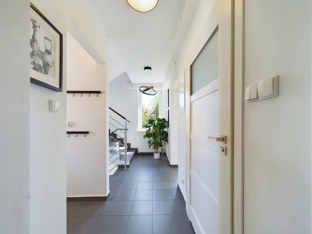 Diese einladende, lichtdurchflutete Maisonette-Wohnung mit einer Gesamtfläche von 155,30 m² befindet sich in einem sehr gepflegten, zweigeschossigen Reihenhaus in einer der beliebtesten und grünsten Gegenden von Szczecin – Pogodno. Die Immobilie eignet sich ideal für Familien, die Wert auf Raum, Komfort und ein ruhiges Wohnumfeld legen.