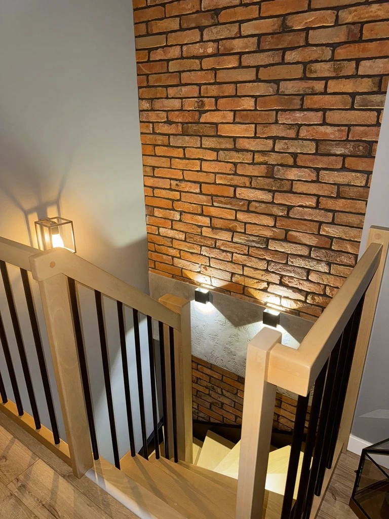 - Authentische Innengestaltung – Wände mit Ziegelriemchen aus historischen Rückbauziegeln